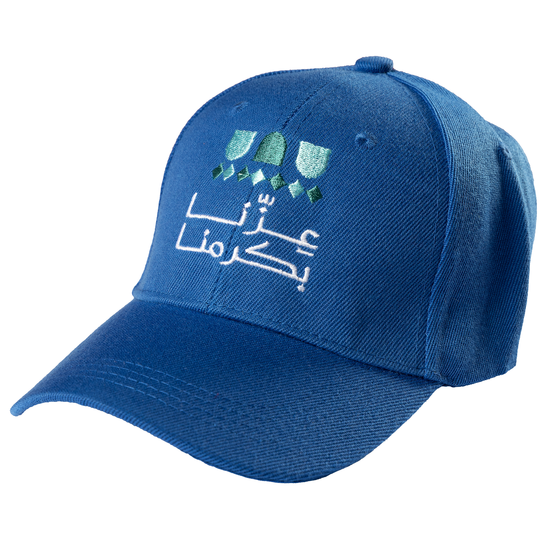 Distinctive caps with premium embroidery featuring the slogan "Our Pride lies in Our Generosity", perfect for celebrating the 95th Saudi National Day. #OurPrideOurNature